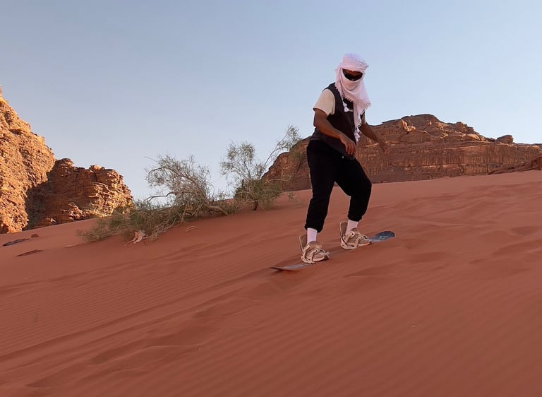 Le sandboarding est une activité incontournable pour ceux qui recherchent une dose d'adrénaline. Glisser sur les dunes de sable du Wadi Rum offre une expérience unique.